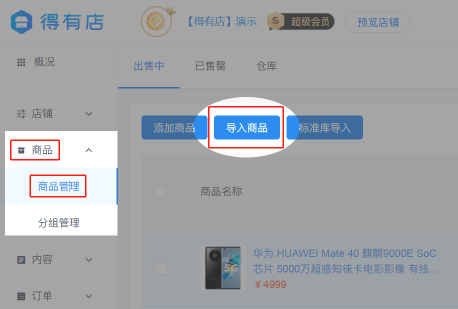 操作路徑:得有店管理后臺(tái)>>商品>>商品管理>>導(dǎo)入商品