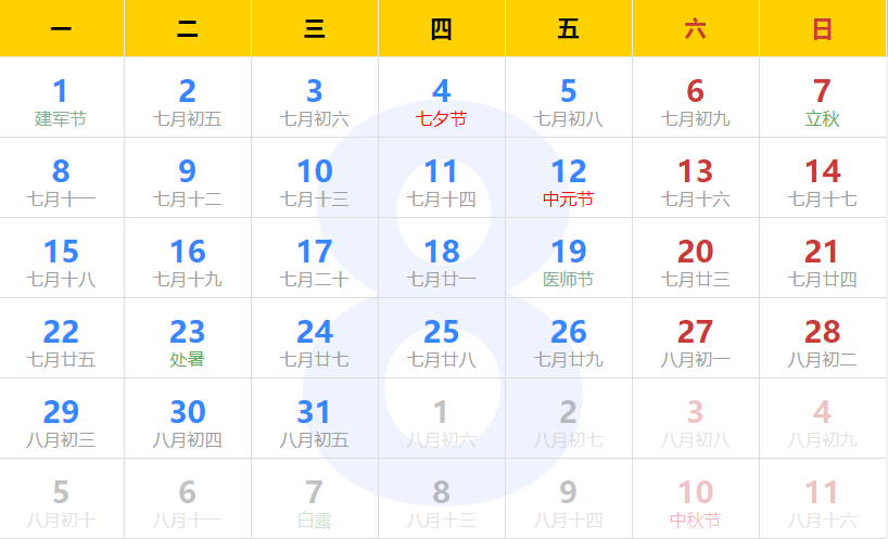 關(guān)鍵營銷熱點:建軍節(jié)、七夕、立秋、中元節(jié)、醫(yī)師節(jié)